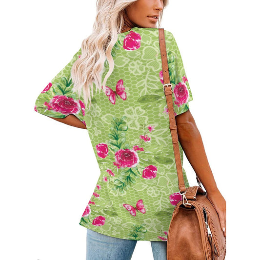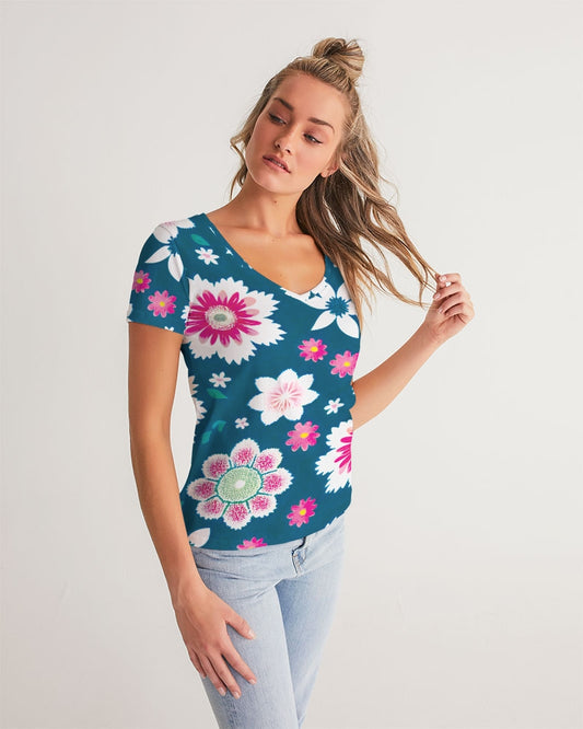 Beautiful floral pattern Women's All-Over Print V-Neck Tee