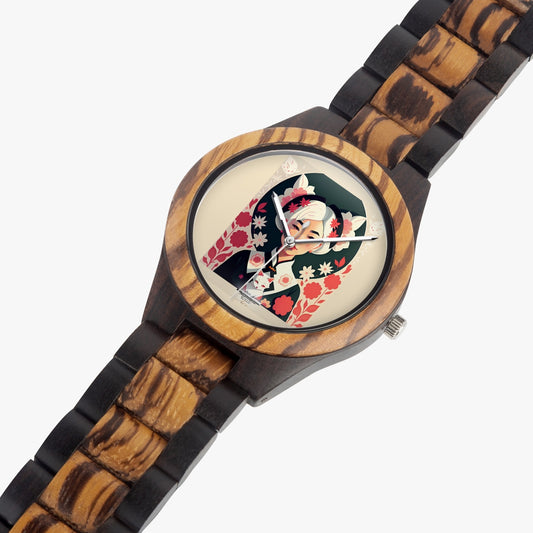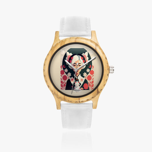 Asian the SilverFox Italian Olive Lumber Wooden Watch - Leather Strap
