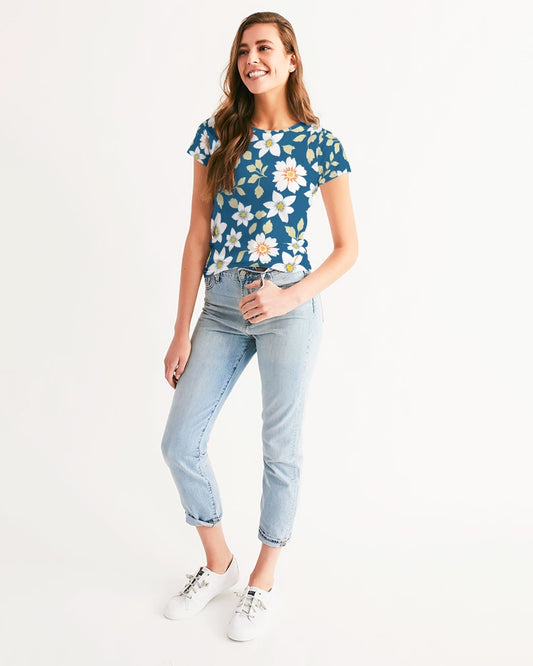 Dark blue background and white flower pattern Women's All-Over Print Tee