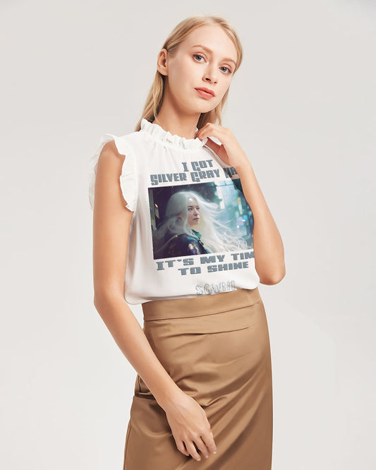 Beautiful white woman my time to shine Women's All-Over Print Ruffle Sleeve Top