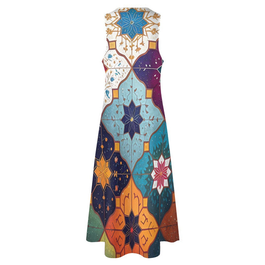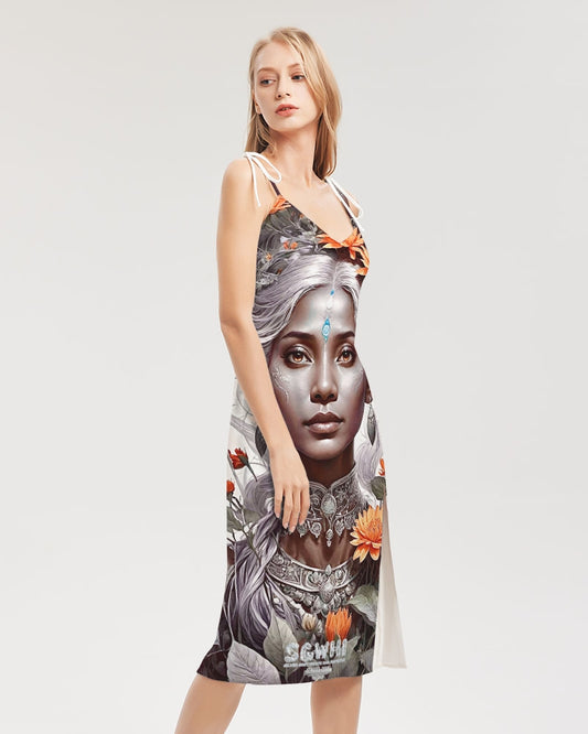 Blossom Indian Grey sister Women's All-Over Print Tie Strap Split Dress