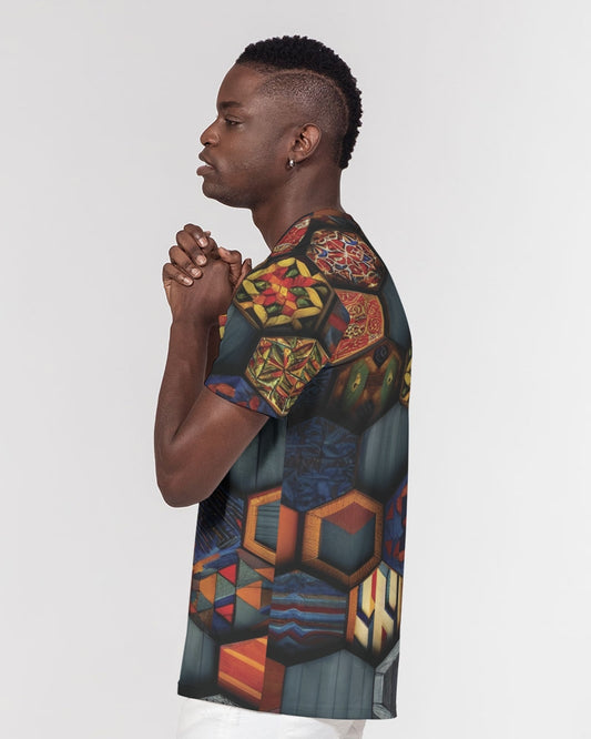 Men flower Hexagon patten. Men's All-Over Print Pocket Tee