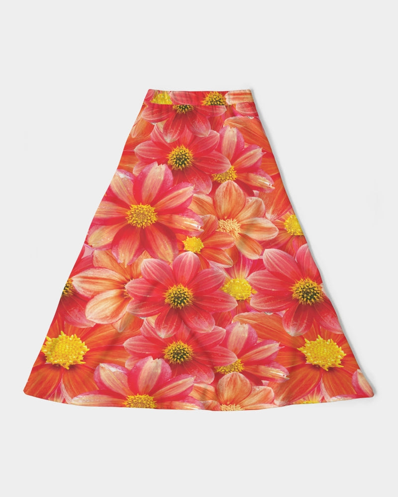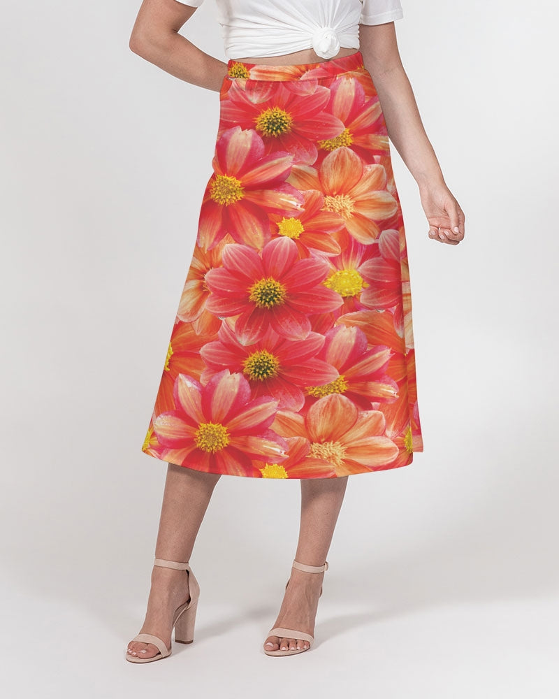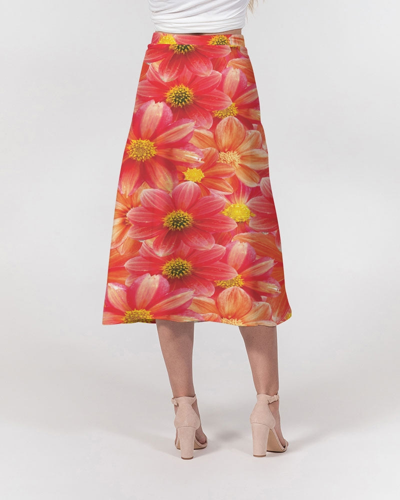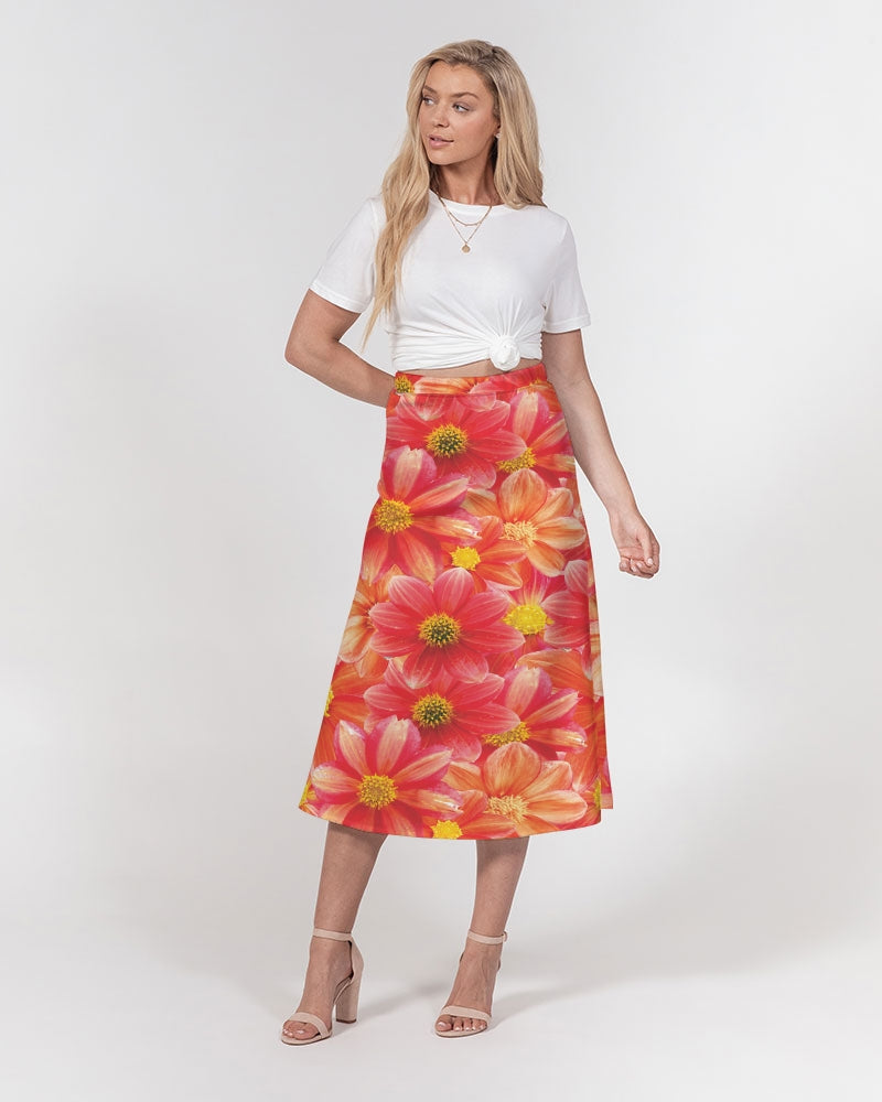 Beautiful blood orange flower design Women's All-Over Print A-Line Midi Skirt