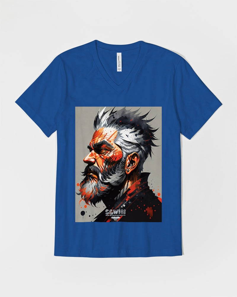 About The ArtCool white bearded man splash Cool white bearded man, beautiful portrait of a combination of sharp lines and colours to make the portrait art to pop.Promoting our dear White brothers who have the amazing silver grey hair and beard. Product DetailsUnisex jersey t-shirt, featuring a classic V neck. Crafted in a soft and comfy fabric, is perfect for all-day wear. Pair this t-shirt with your favorite shorts or jeans for everyday style, or layer it under a button shirt. Bella + Canvas is known for their Retail Fit, which is more fitted than a standard t-shirt. They are designed to contour the body more closely with more form-fitting lines around the shoulders, arms, and torso.