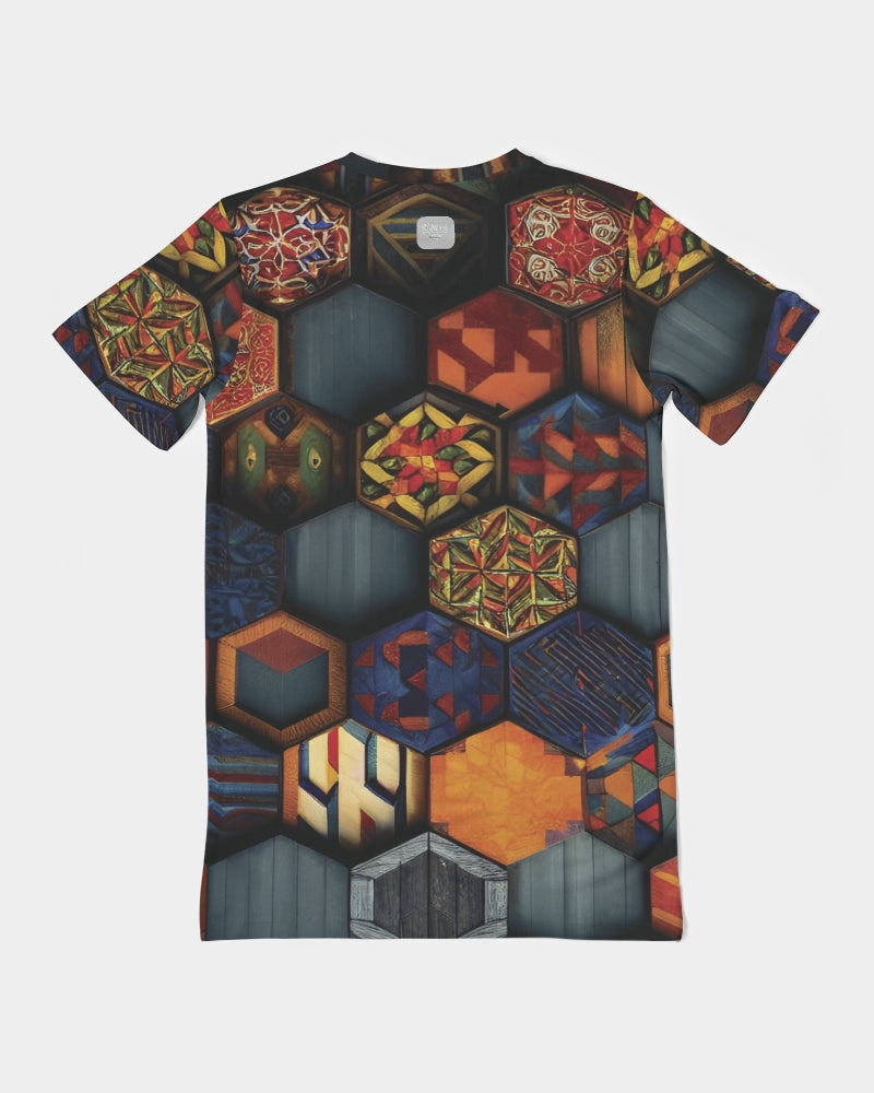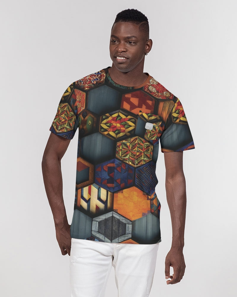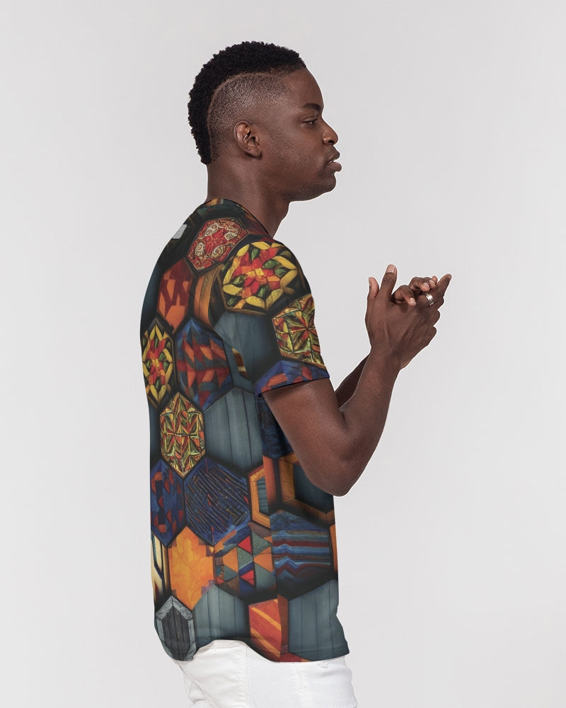 Men flower Hexagon patten. Men's All-Over Print Pocket Tee