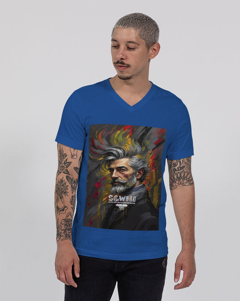 About The ArtWhite Knight, part one of the Knights collection This is one a four part knights collection promoting men with silver grey white hair and beards Product DetailsUnisex jersey t-shirt, featuring a classic V neck. Crafted in a soft and comfy fabric, is perfect for all-day wear. Pair this t-shirt with your favorite shorts or jeans for everyday style, or layer it under a button shirt. Bella + Canvas is known for their Retail Fit, which is more fitted than a standard t-shirt. They are designed to contour the body more closely with more form-fitting lines around the shoulders, arms, and torso.