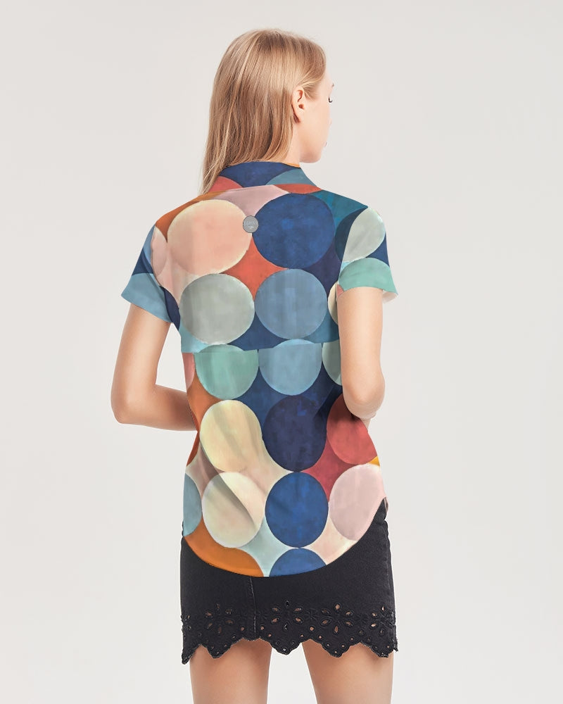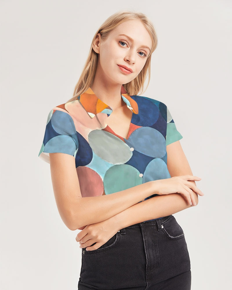 Beautiful, abstract circle pattern design Women's All-Over Print Short Sleeve Button Up