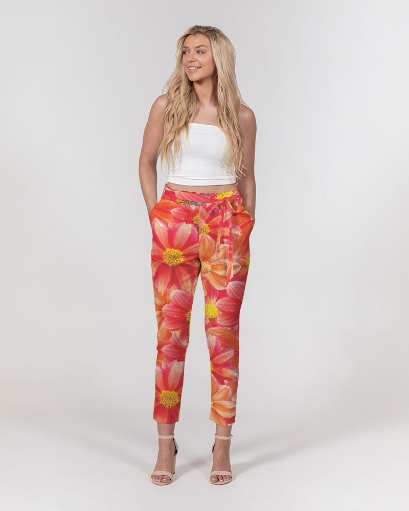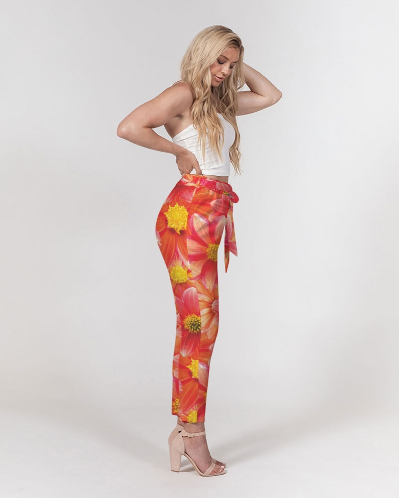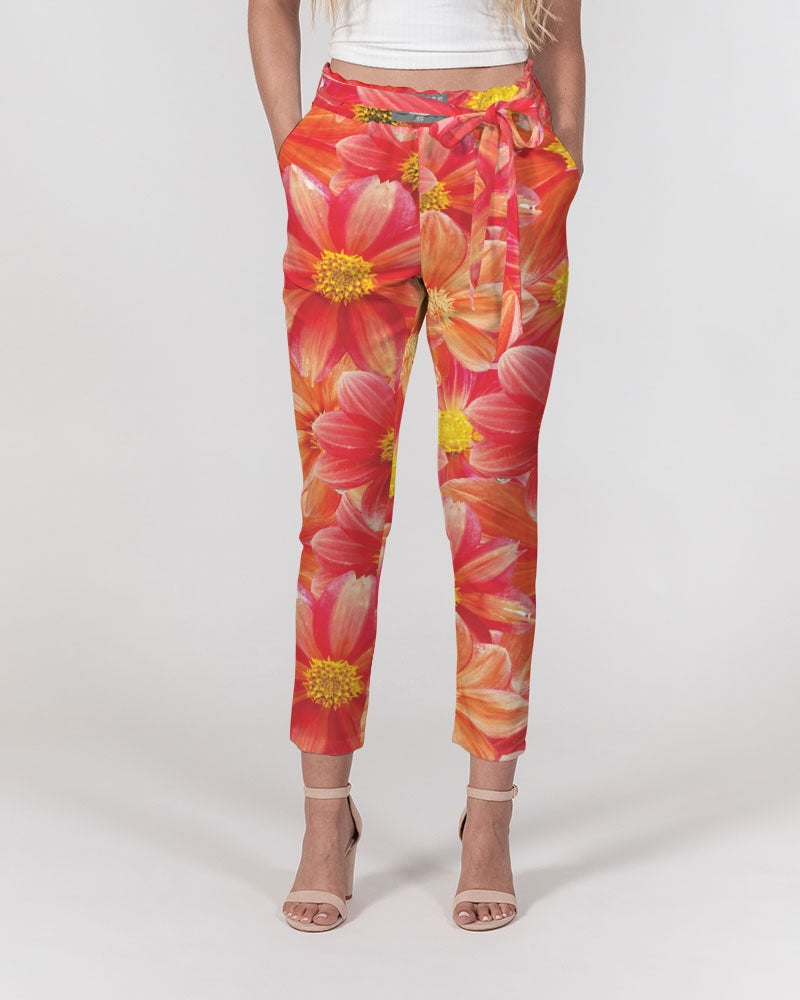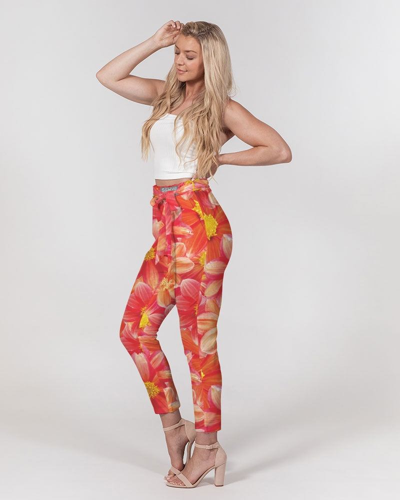 Beautiful blood orange flower design Women's All-Over Print Belted Tapered Pants