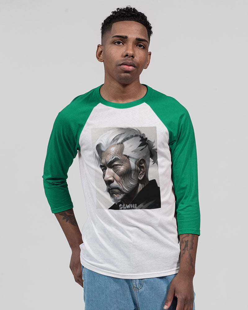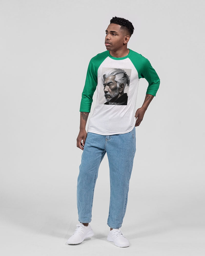 Handsome Asian brother pink painted portrait Unisex Three-Quarter Sleeve Baseball Tee | Bella + Canvas