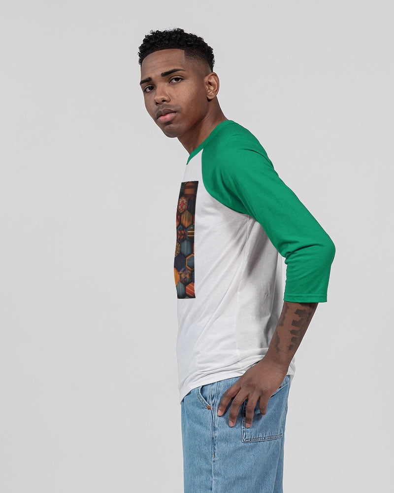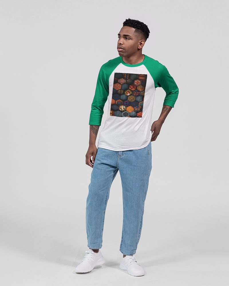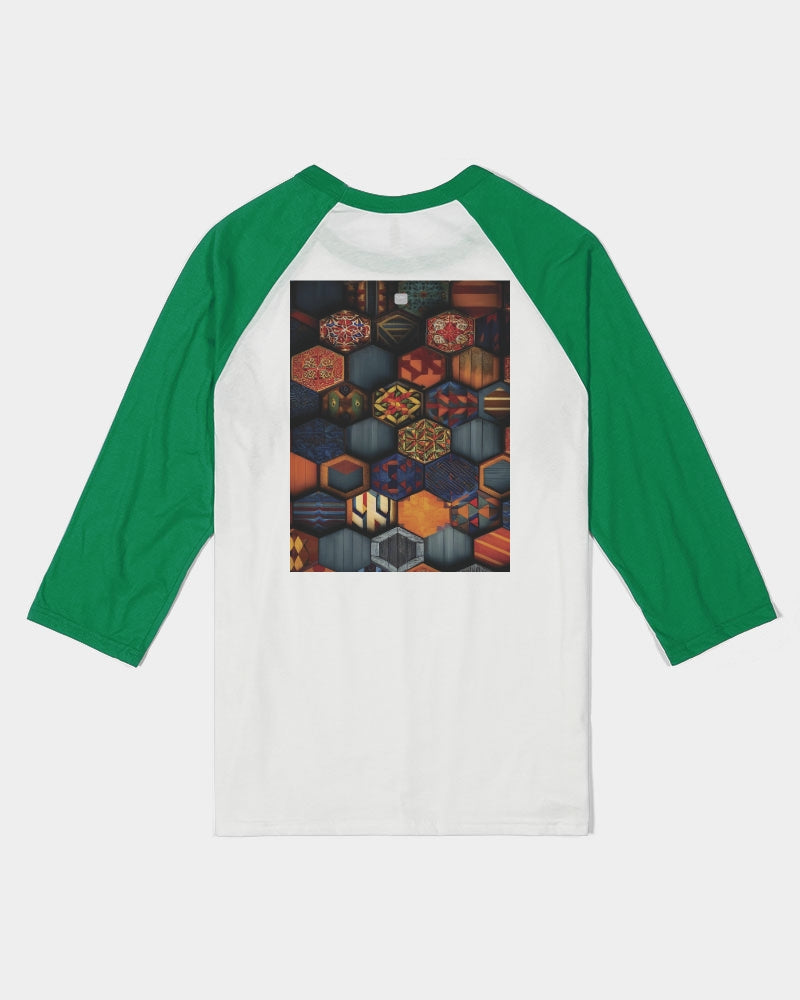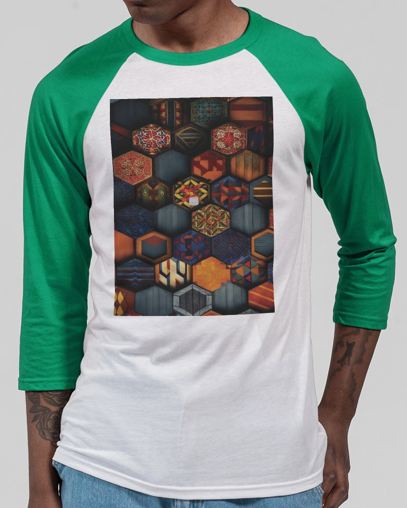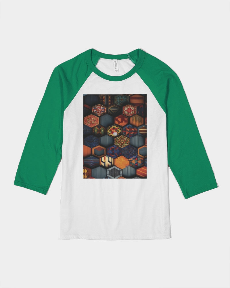 Men flower Hexagon patten. Unisex Three-Quarter Sleeve Baseball Tee | Bella + Canvas