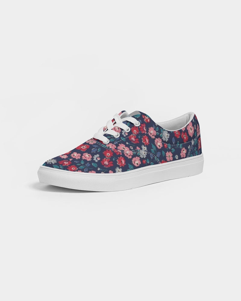About The ArtMidnight blue pretty glance. Beautiful array of small gorgeous flowers pattern with a dark blue ambience. Exclusive pattern or portrait design from SGWHI. Product DetailsLooking for ultimate comfort in your step? Breathable lining, soft insoles, and rubber outsoles for durable traction make the Women's Lace Up Canvas shoe a perfect go-to for everyday wear.