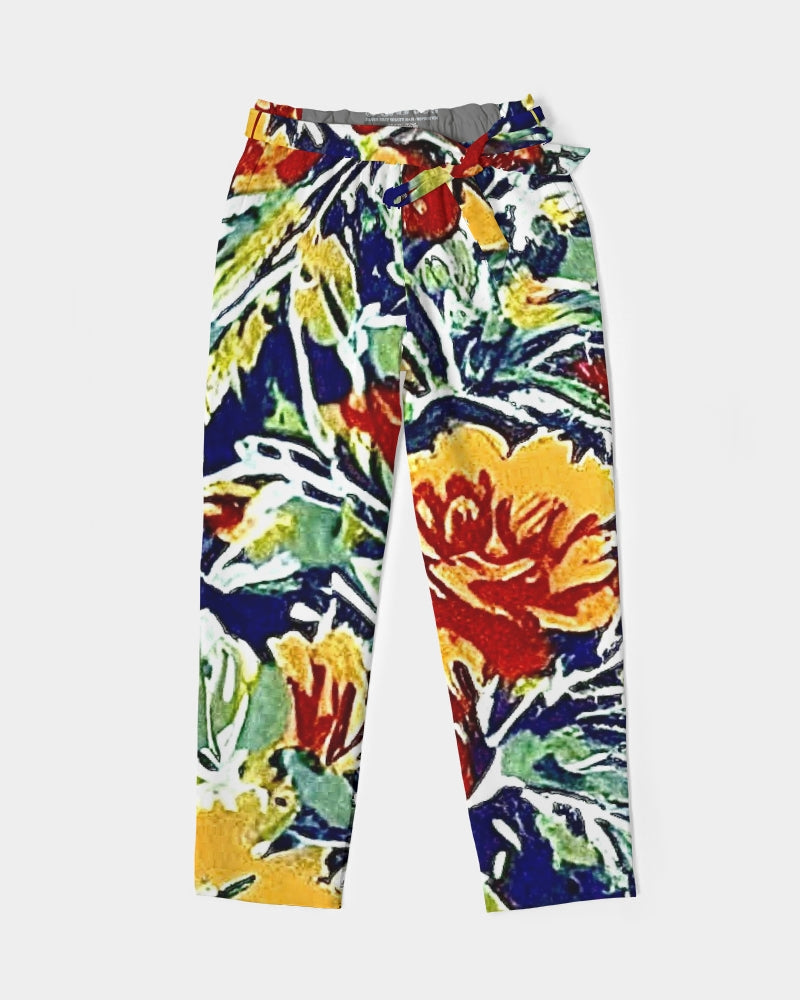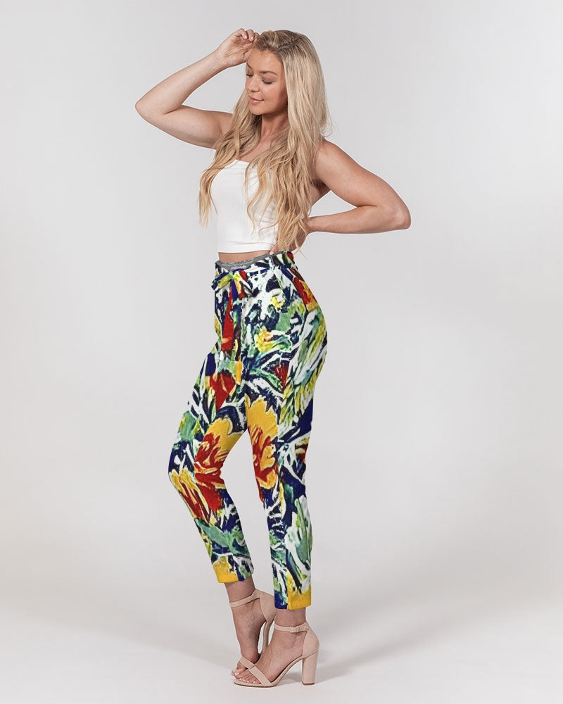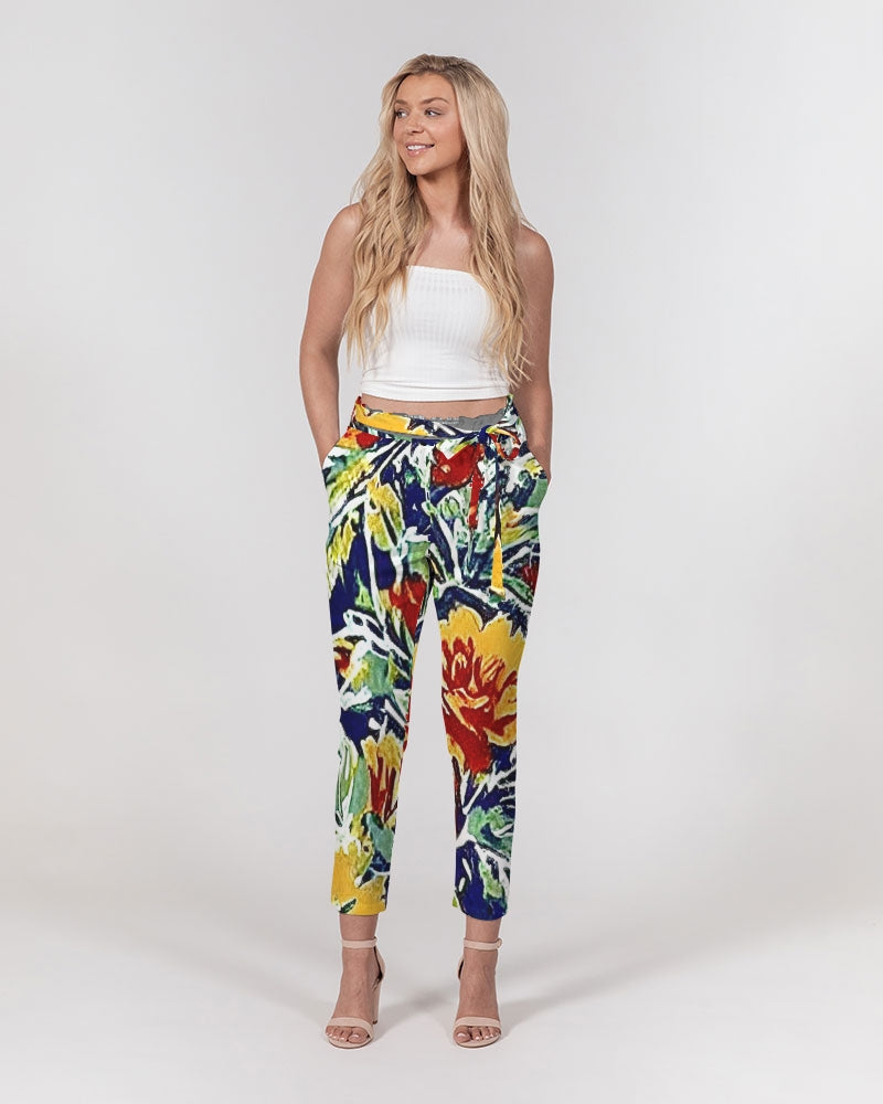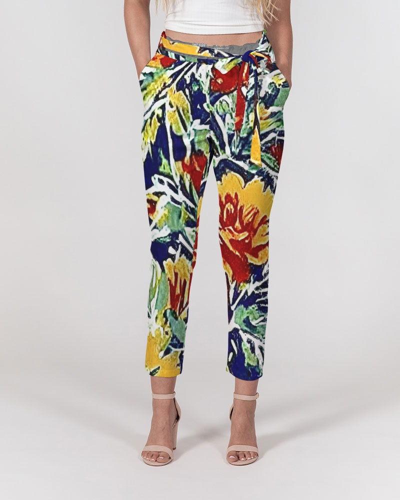Painted flower design Women's All-Over Print Belted Tapered Pants