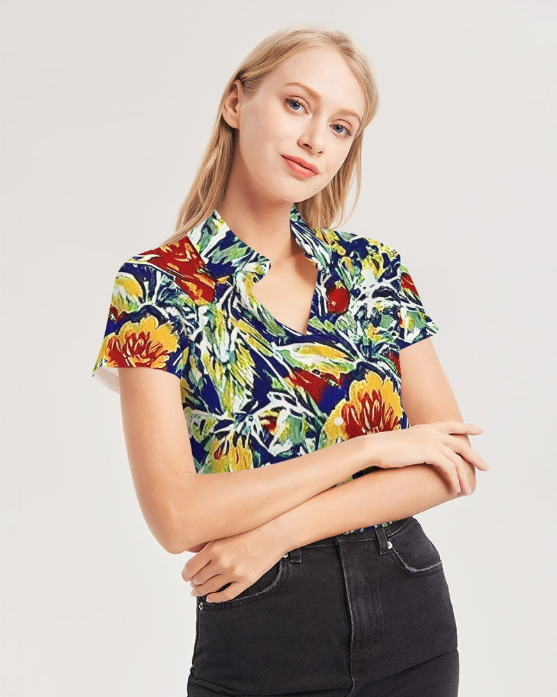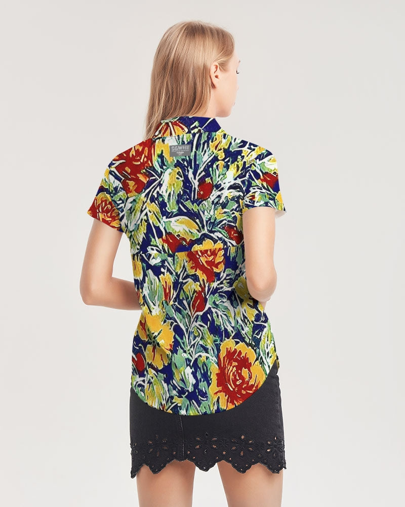 Painted floor design Women's All-Over Print Short Sleeve Button Up