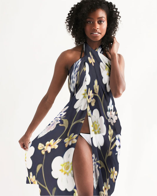 Dark blue background and white flower pattern All-Over Print Swim Cover Up
