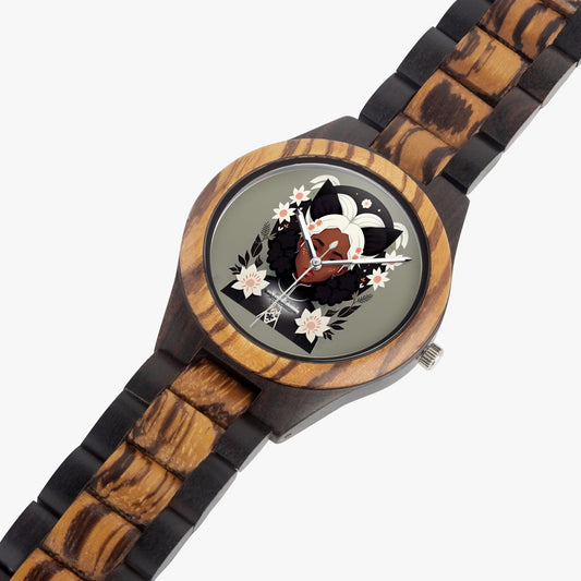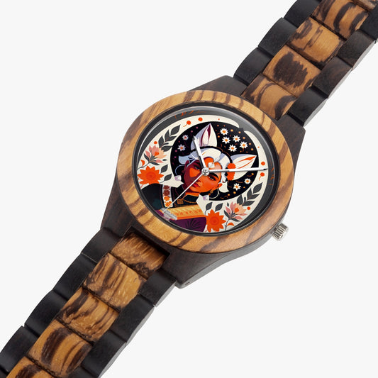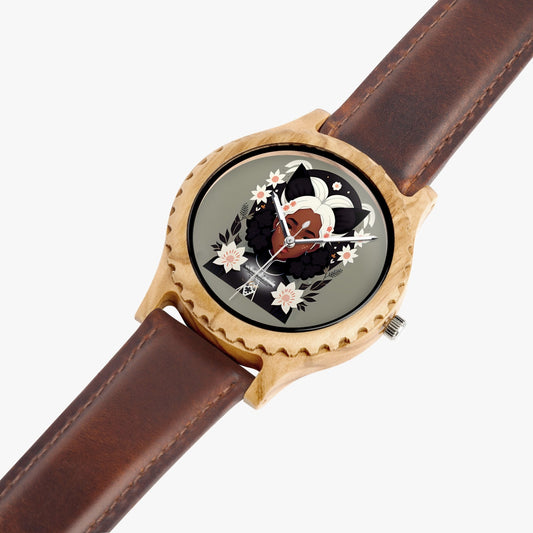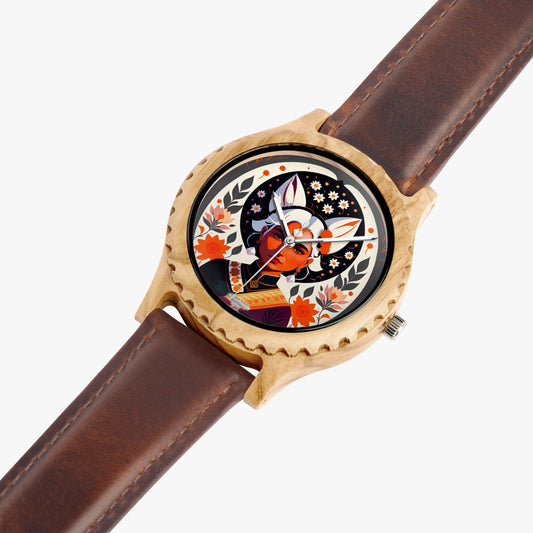 Asian the SilverFox Italian Olive Lumber Wooden Watch - Leather Strap