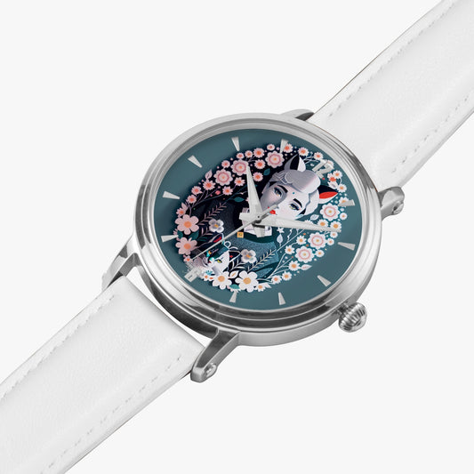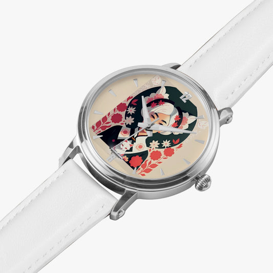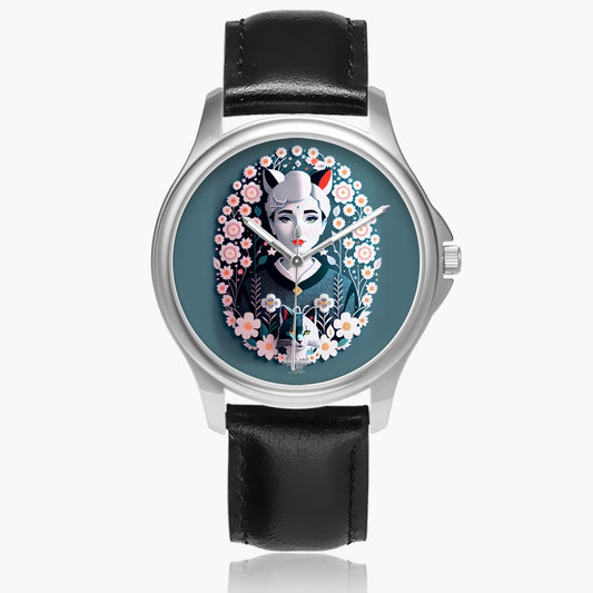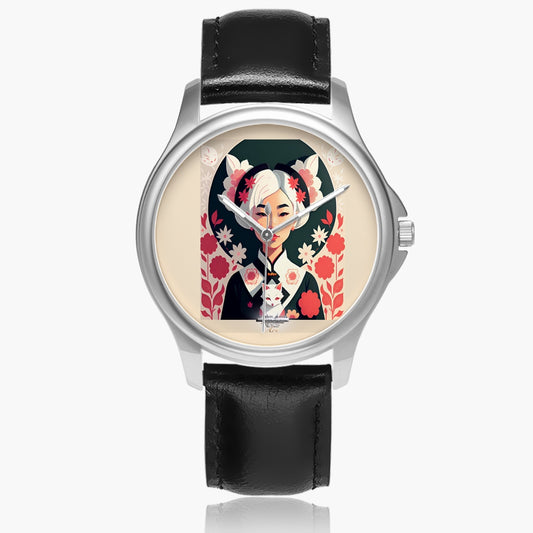 Asian the SilverFox Stylish Classic Leather Strap Quartz Watch (Silver)