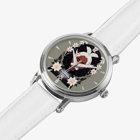 Nubian Silverfox Stylish Classic Leather Strap Quartz Watch (Silver)