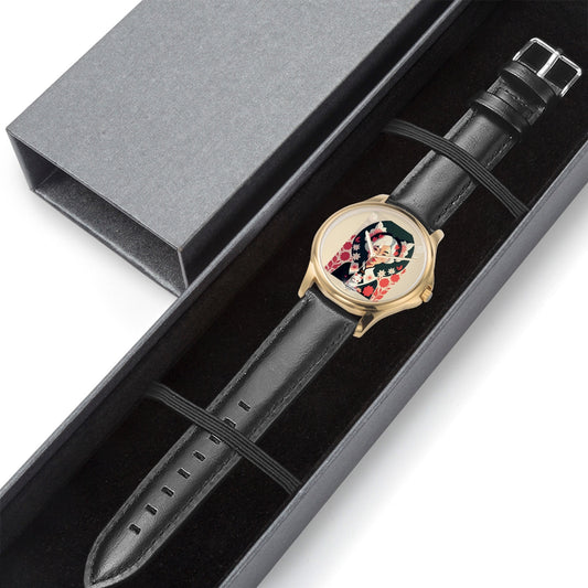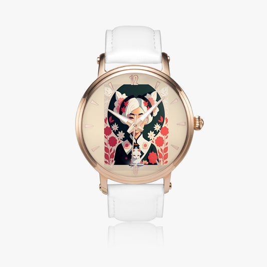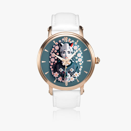 Asian the SilverFox Stylish Classic Leather Strap Quartz Watch (Gold)