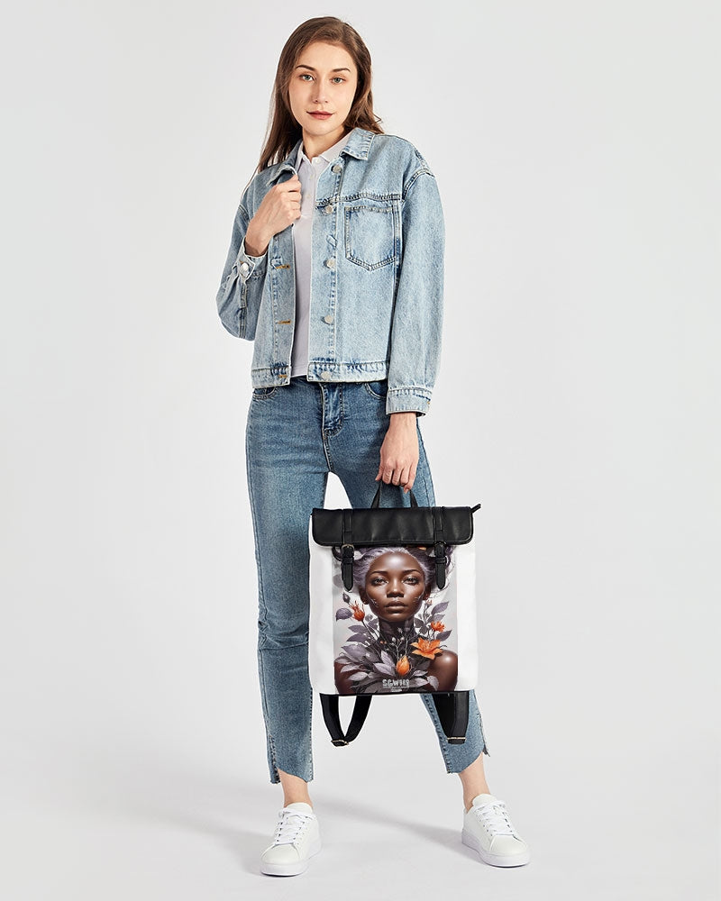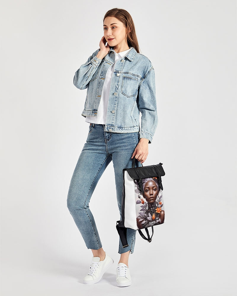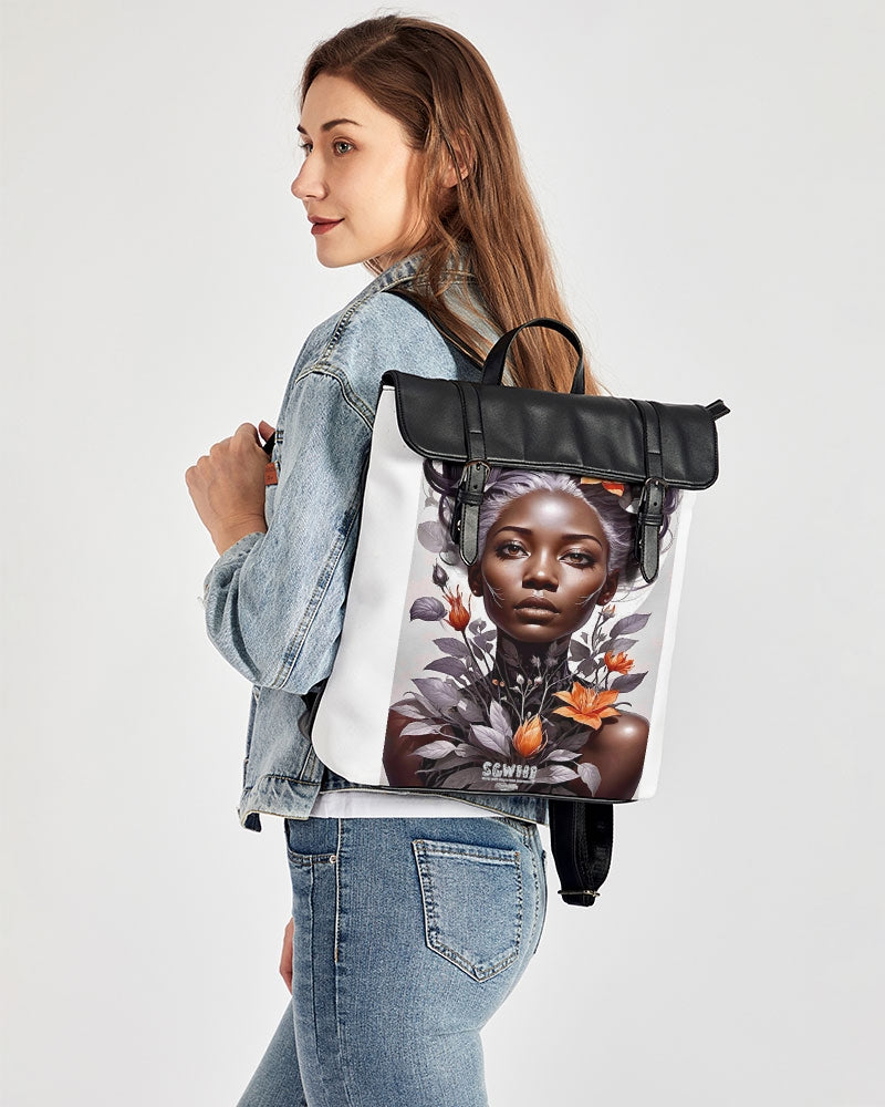 About The ArtBeautiful black silver grey hair blossom women Promoting black women with silver grey hair the time to blossom. Product DetailsUnleash your wanderlust with our Casual Flap Backpack, crafted from durable canvas and designed for on-the-go style. Adventure seekers and urban explorers alike will appreciate its versatile styling options while strolling through city streets or embarking on spontaneous getaways. Pack it with your essentials, from a water bottle and sunglasses to a laptop and travel journal, and let this backpack accompany you on your everyday journeys with ease and flair.