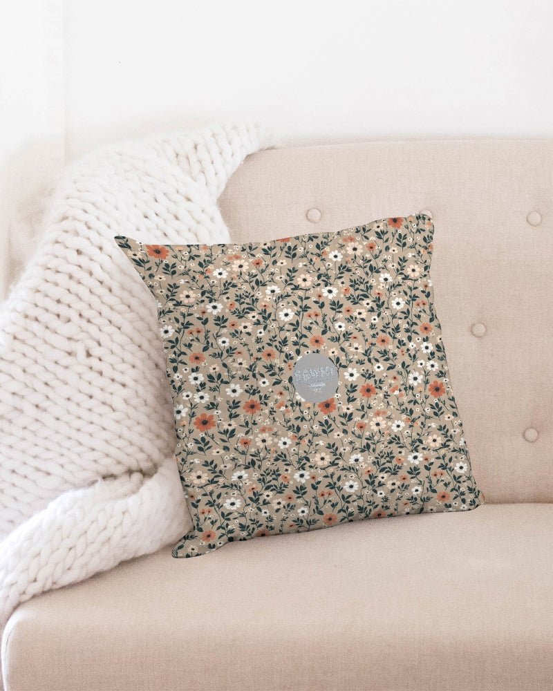 About The ArtBusy and pretty Beautiful array of small gorgeous flowers pattern with a light brown autumn feel Product DetailsSpice up your home with this soft, smooth, custom designed Throw Pillow. You can add a touch of comfort to any living space. Pillow insert not included.