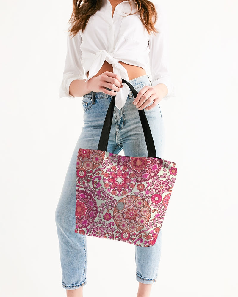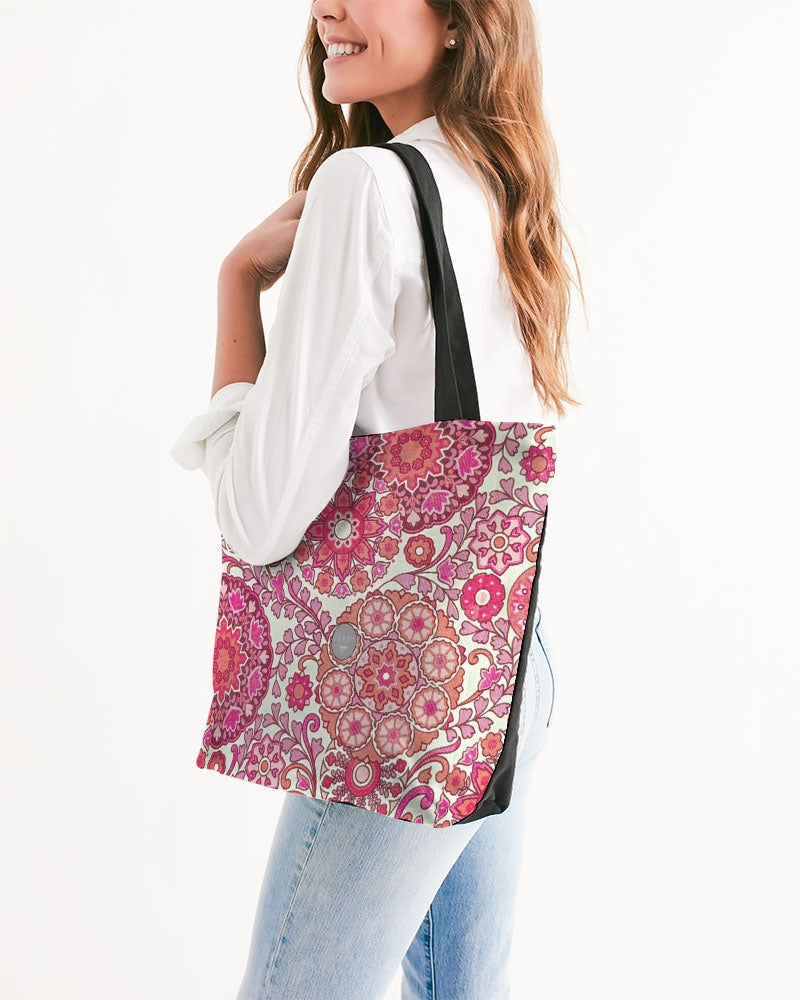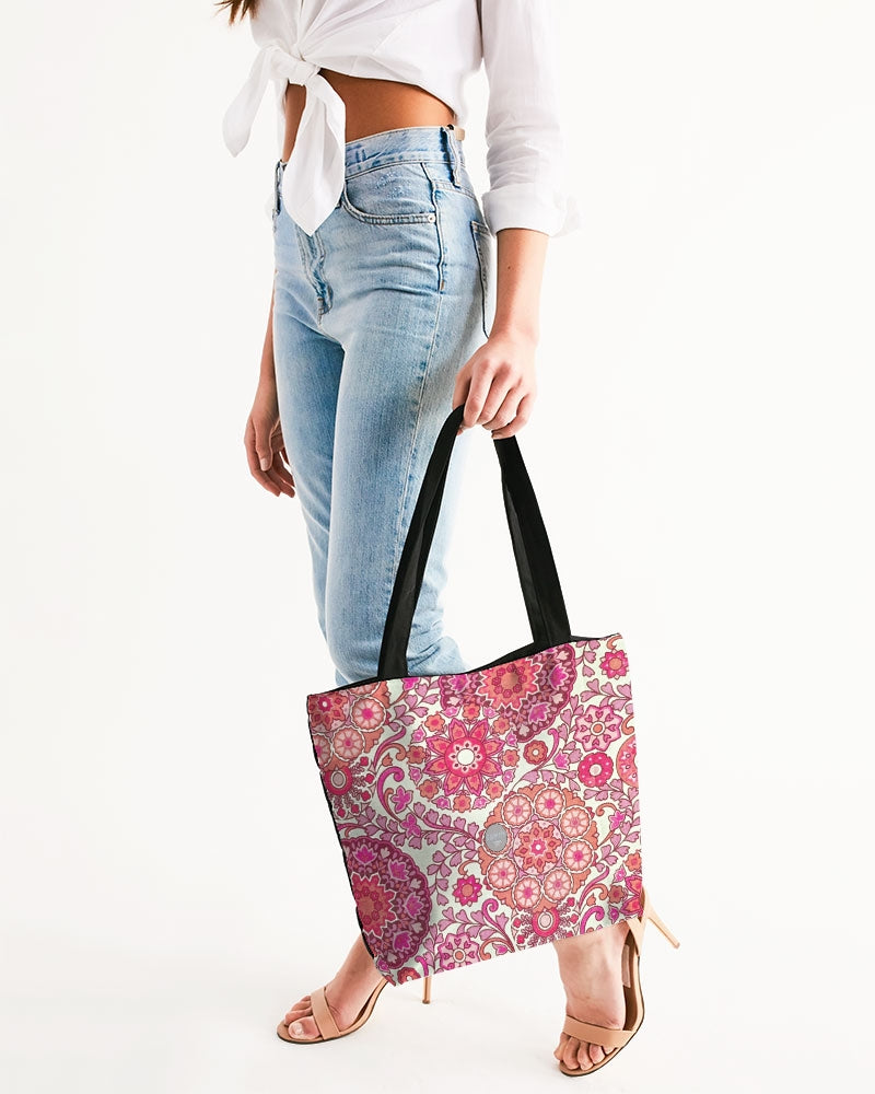 Pink Royal Abstract flower Canvas Zip Tote