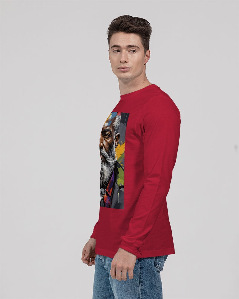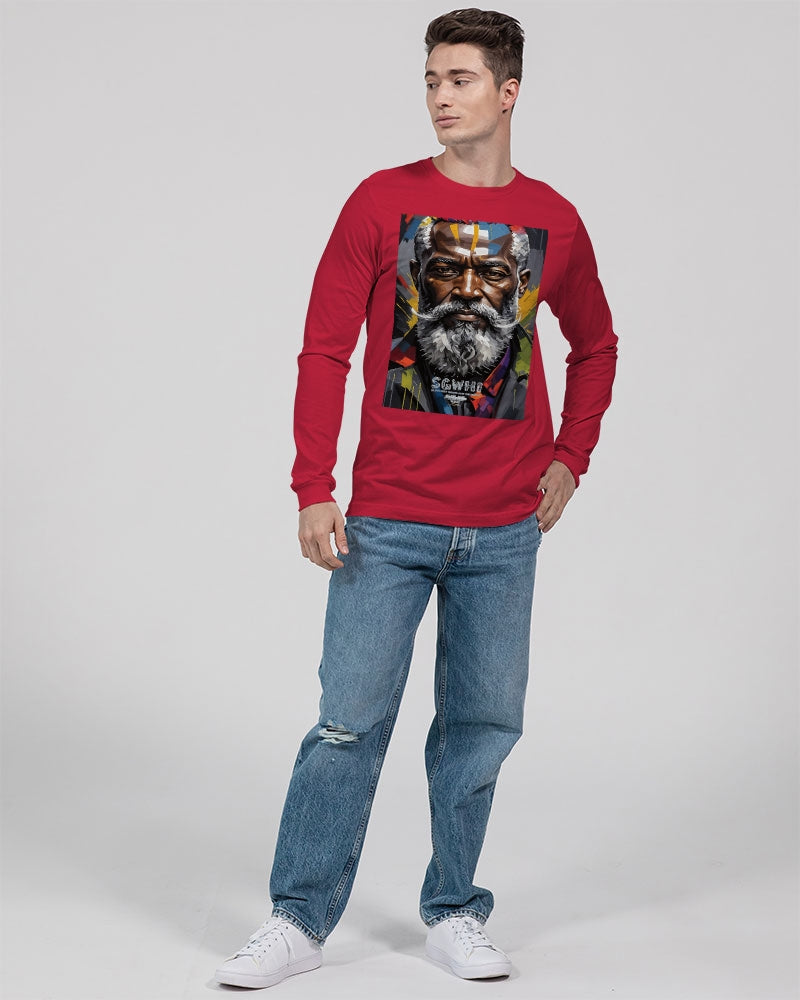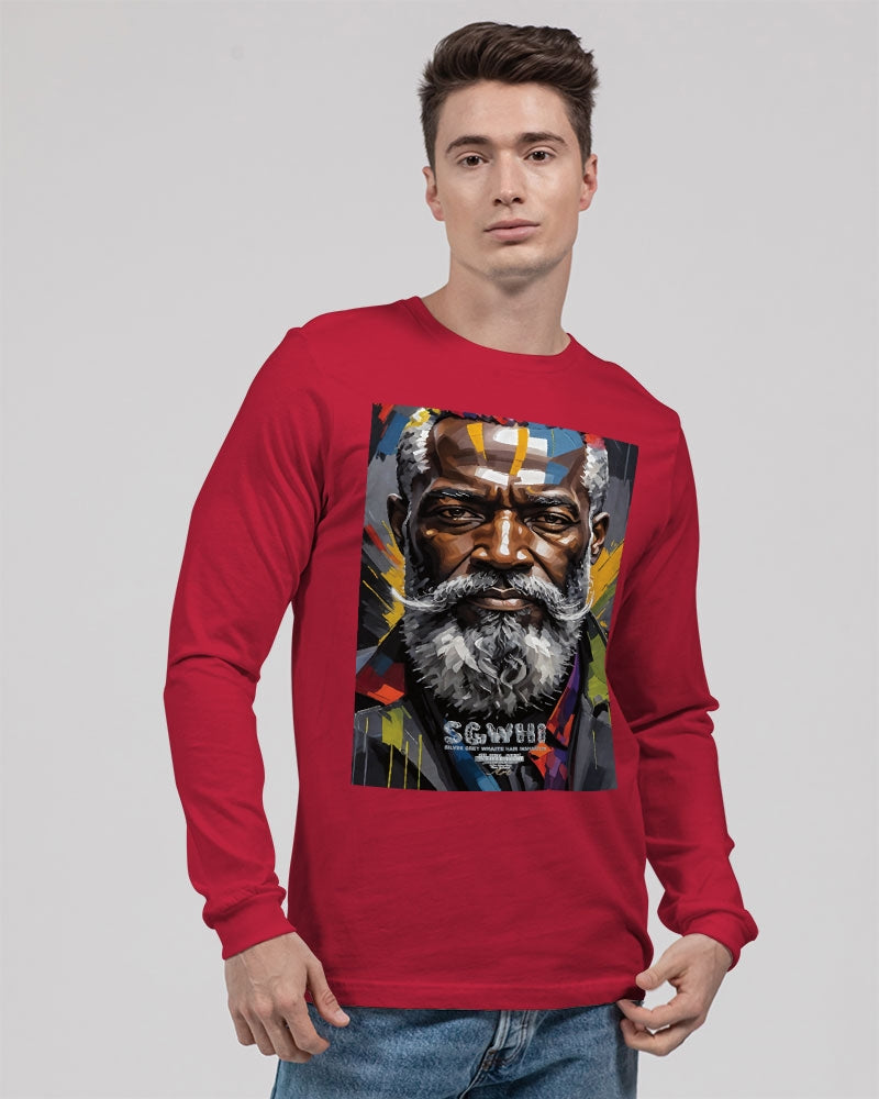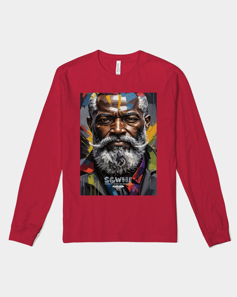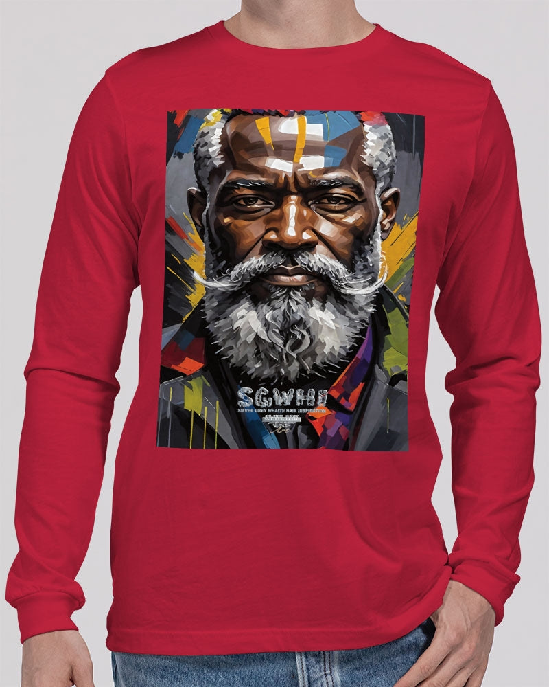 About The ArtBlack Knight This is number two of a four part knights collection. Promoting black men with silver grey white hair and beards Product DetailsThe perfect unisex Long Sleeve T-shirt for relaxed comfort, featuring a crew neckline, ribbed collar and cuffs, and straight hem. Bella + Canvas is known for their Retail Fit, which is more fitted than a standard t-shirt. They are designed to contour the body more closely with more form-fitting lines around the shoulders, arms, and torso.