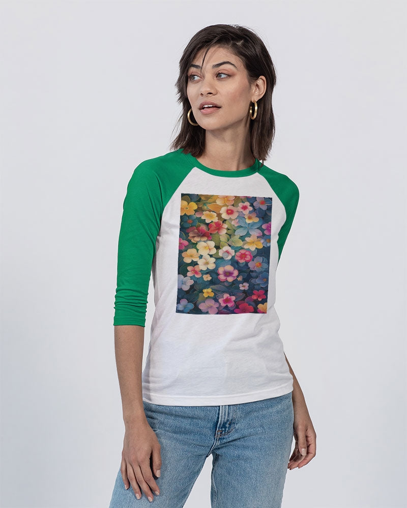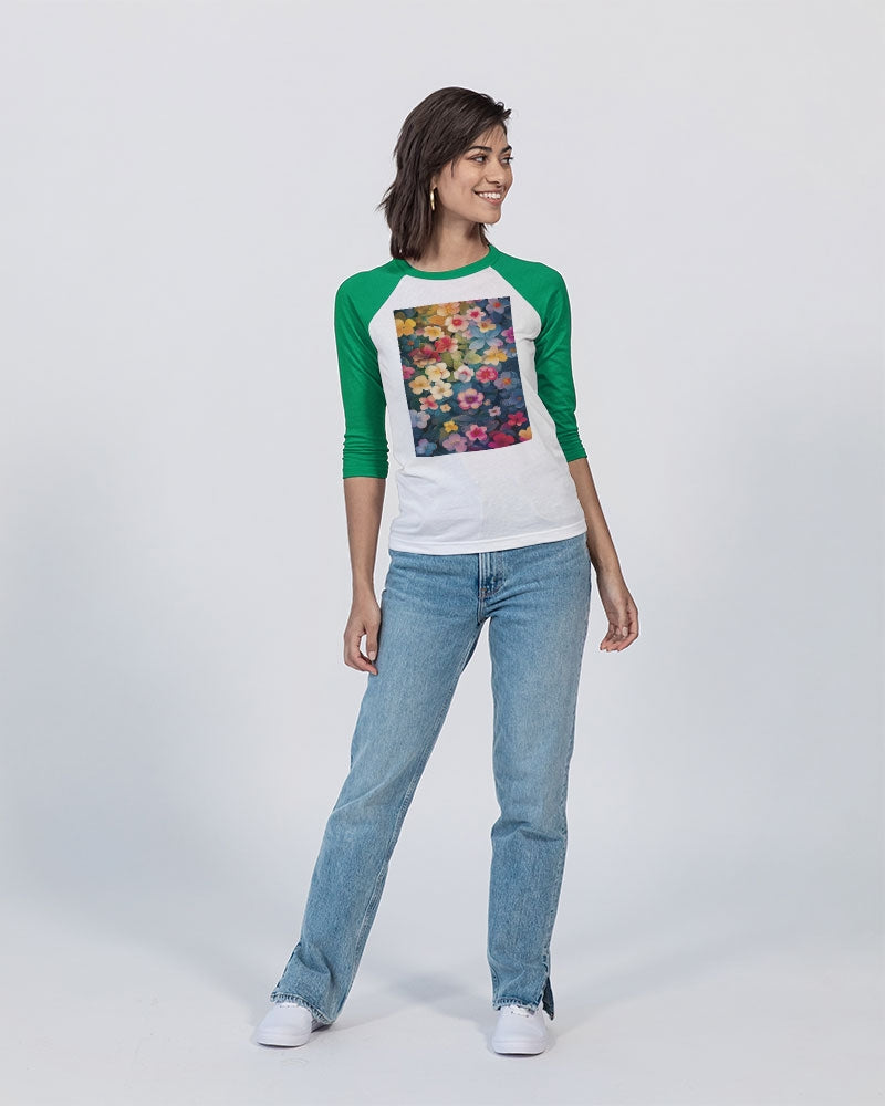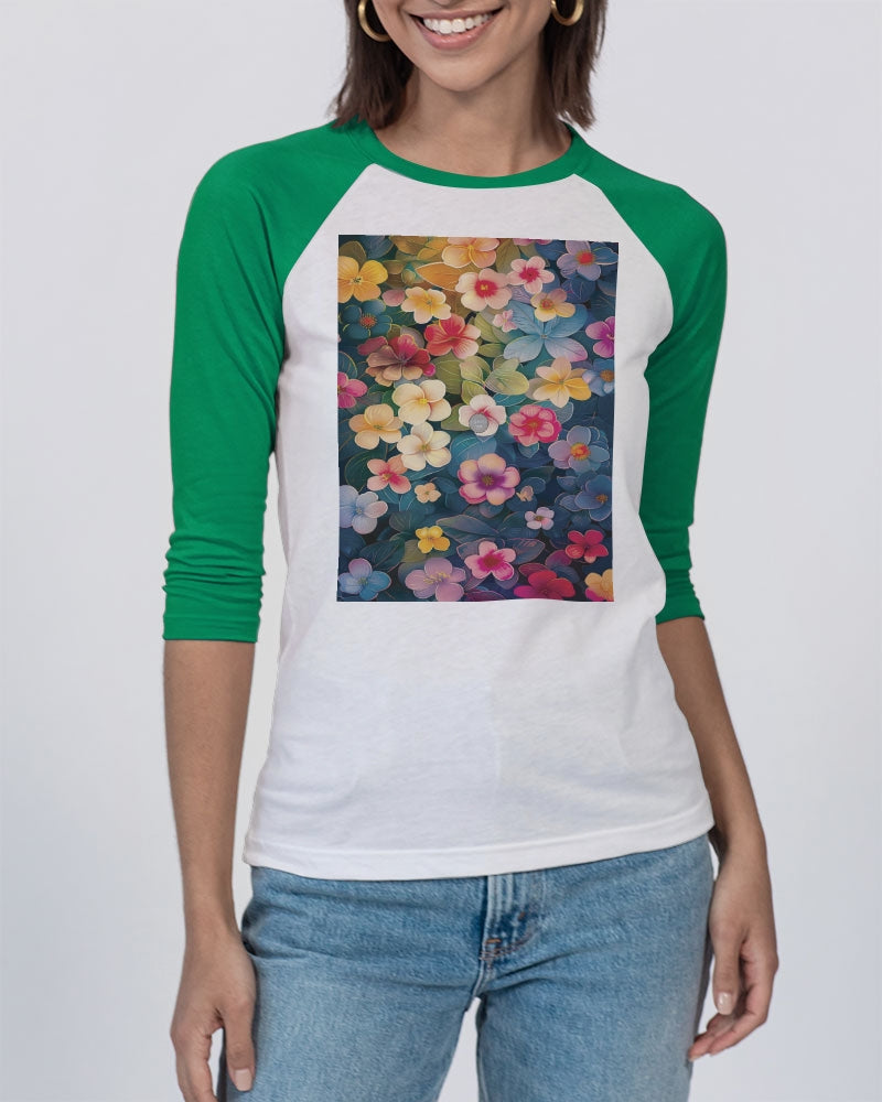 Dark summer blossom Unisex Three-Quarter Sleeve Baseball Tee | Bella + Canvas