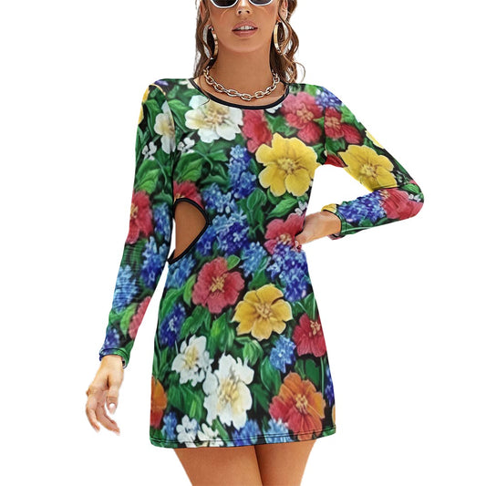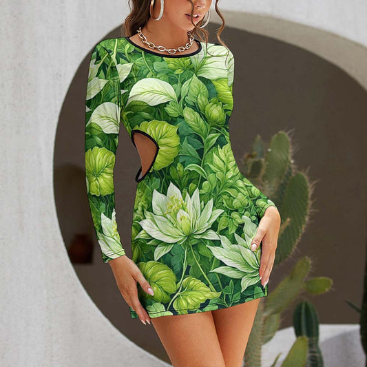 Ladies Long Sleeve Waist Cutout Slim Dress
