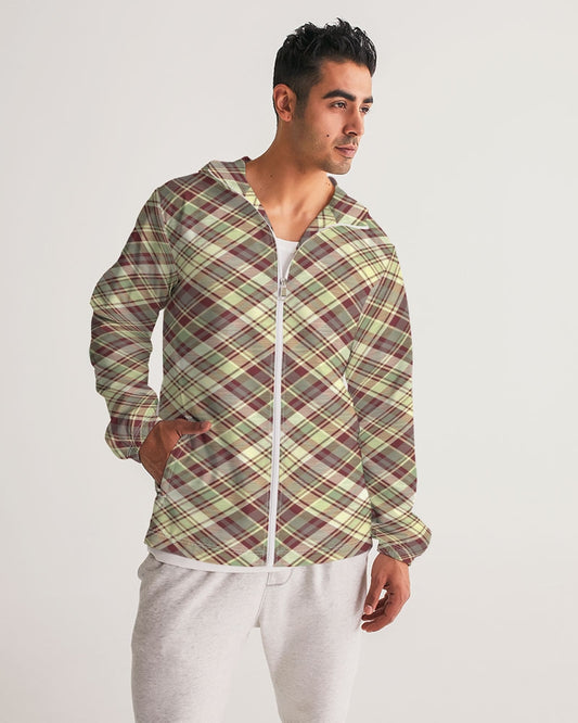 Distinguish Beige and burgundy tartan Men's All-Over Print Windbreaker