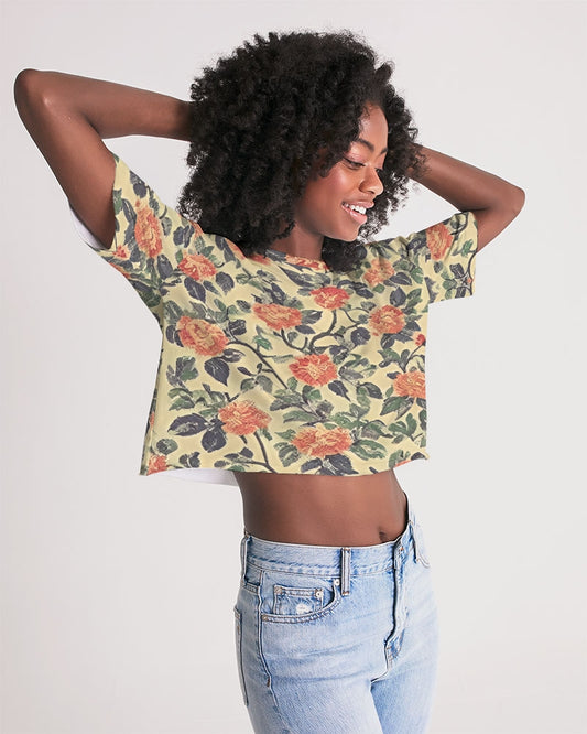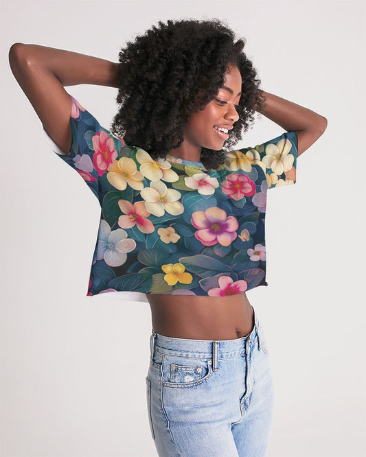 Dark summer blossom Women's All-Over Print Lounge Cropped Tee