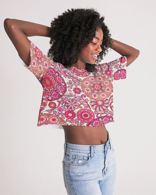 Pink Royal Abstract flower Women's All-Over Print Lounge Cropped Tee