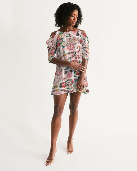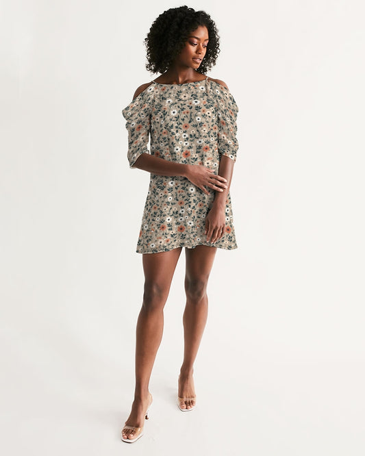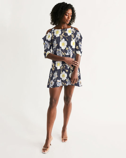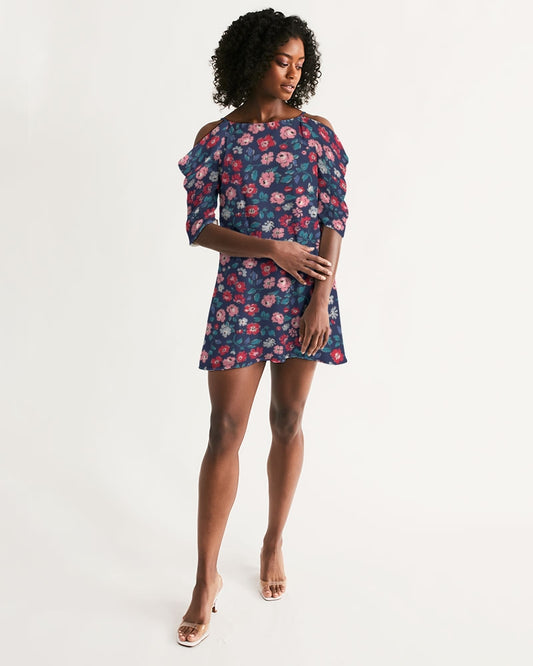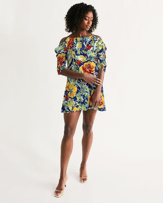 Beautiful floral pattern Women's All-Over Print Open Shoulder A-Line Dress