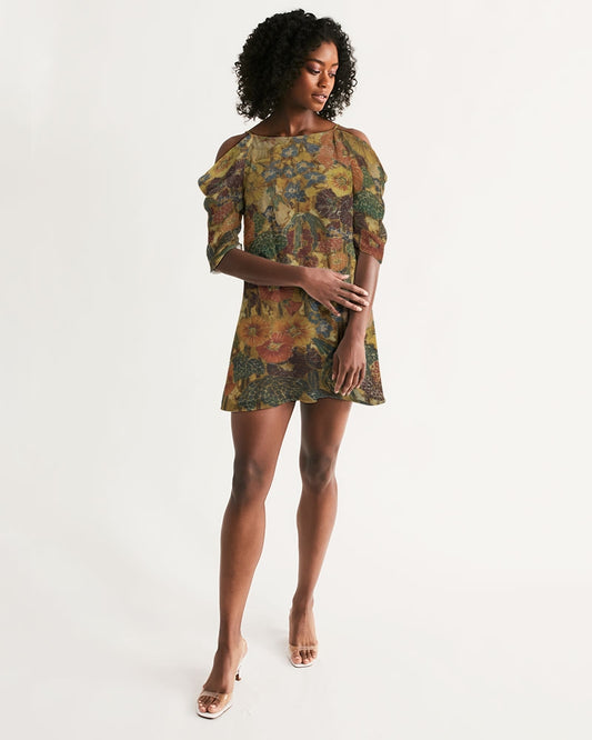 Autumn play Women's All-Over Print Open Shoulder A-Line Dress