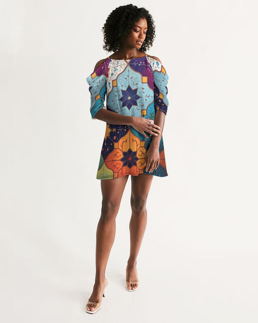 Absstract flower star. Women's All-Over Print Open Shoulder A-Line Dress