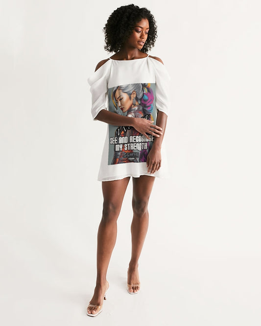 Women, see and recognise my strength. [ Asian sister ] Women's All-Over Print Open Shoulder A-Line Dress