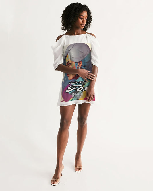 Black Sister Collection [Part 1 ] Women's All-Over Print Open Shoulder A-Line Dress
