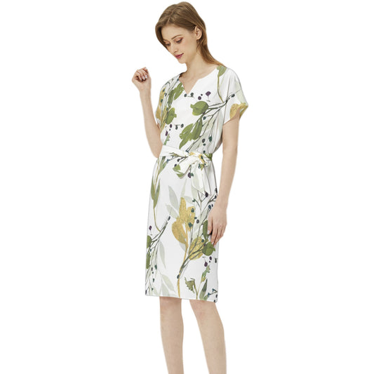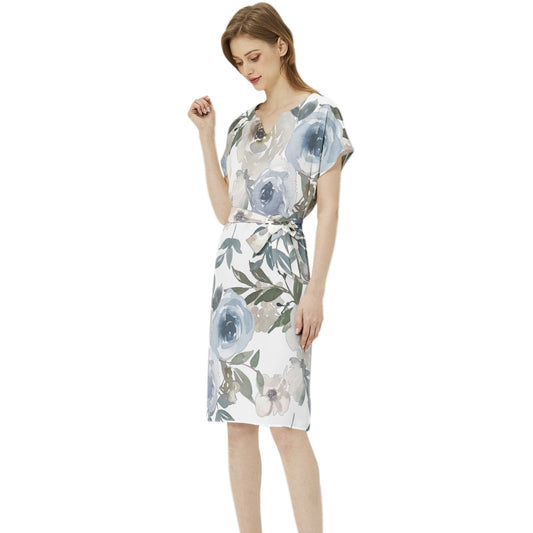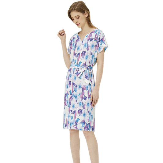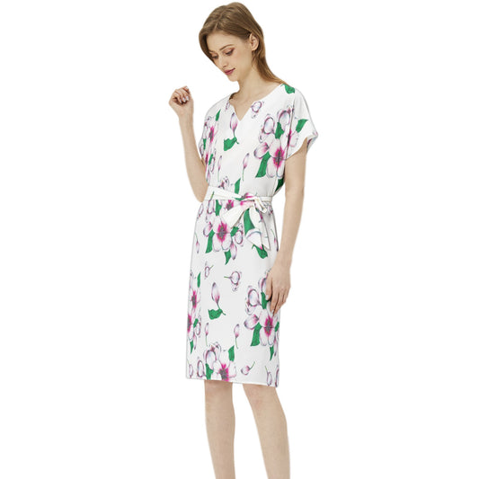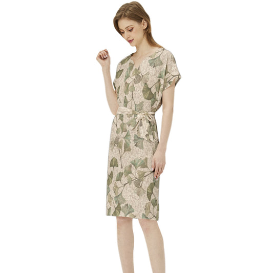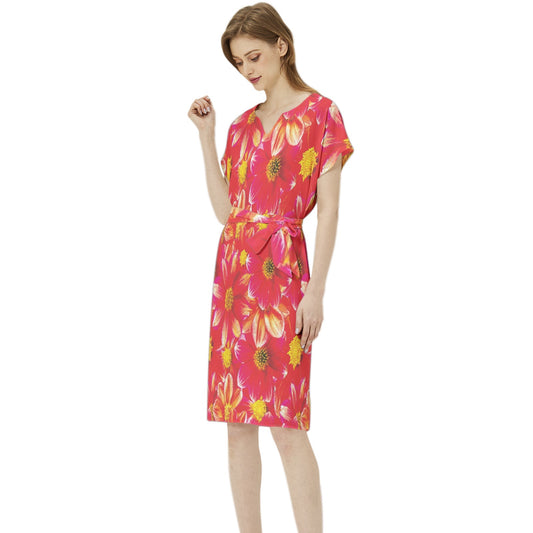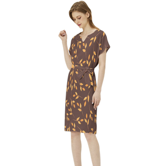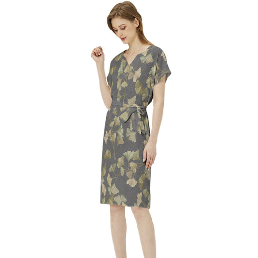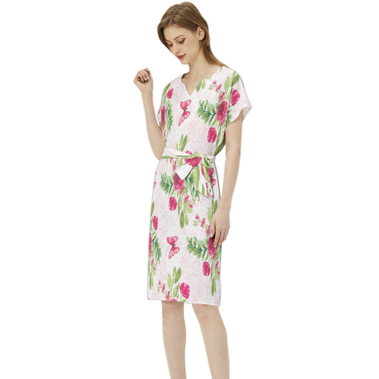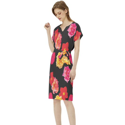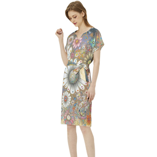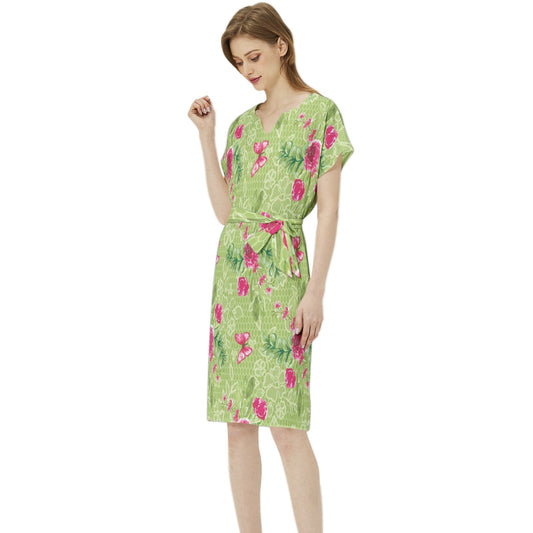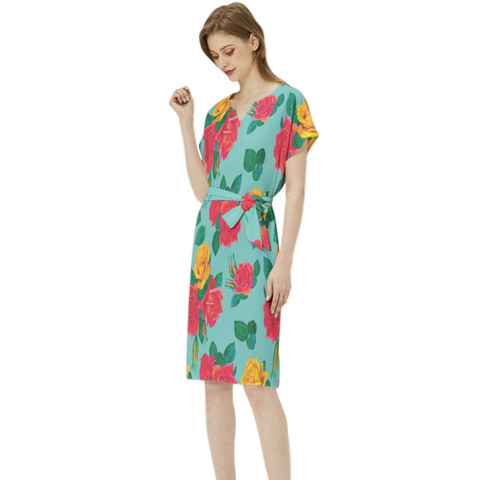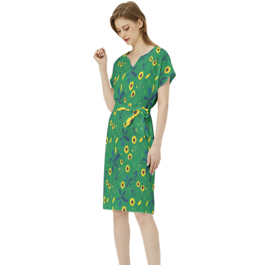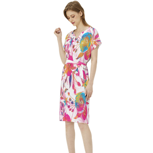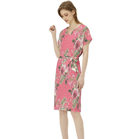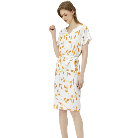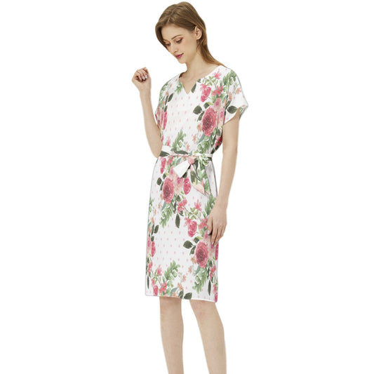 Betwing Seleeve Notch Neck Casual Dress with Belt