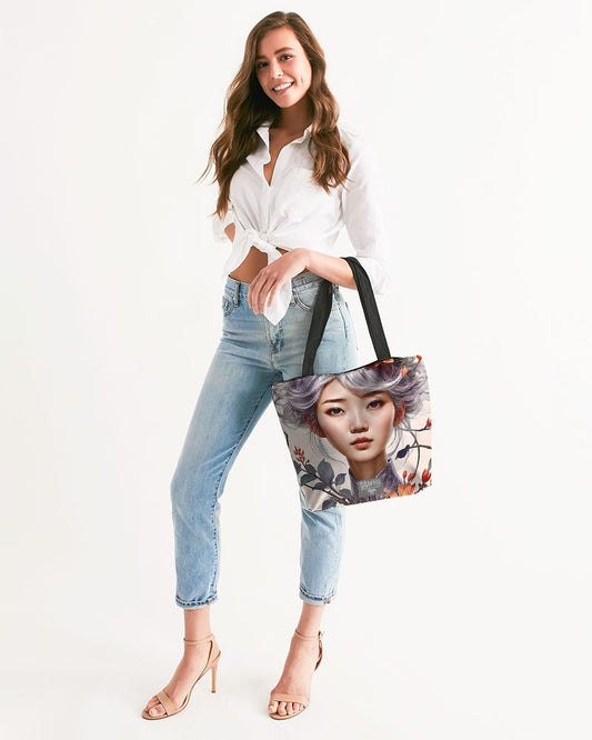 Beautiful Asian woman grey hair blossom Canvas Zip Tote