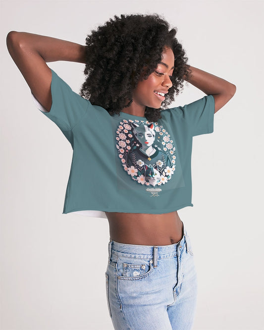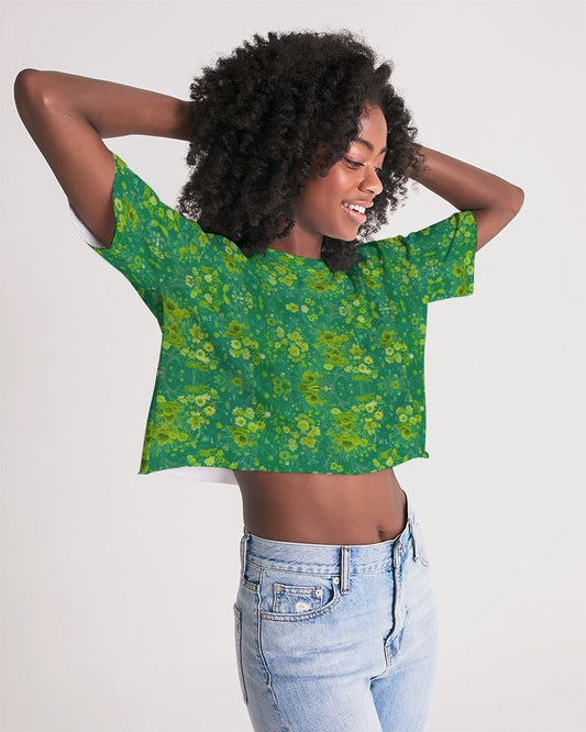 Green lush Repeat pattern Women's Lounge Cropped Tee