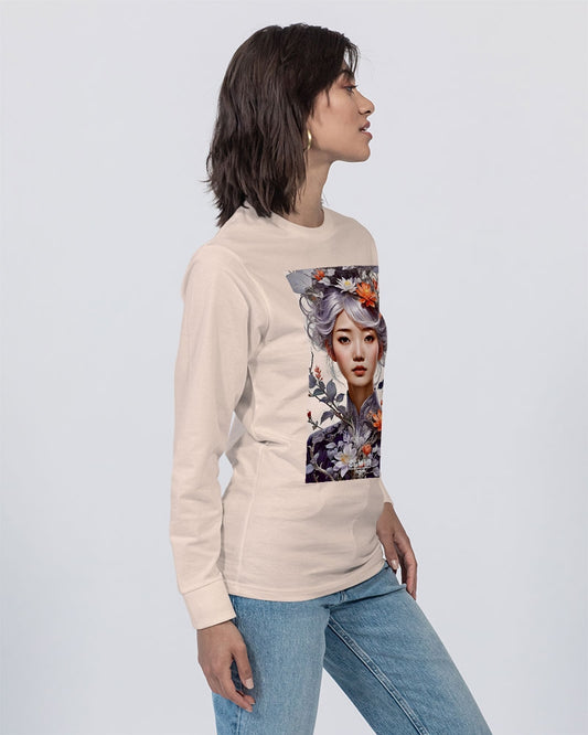 Beautiful Asian woman grey hair blossom Unisex Long Sleeve Tee | Lane Seven