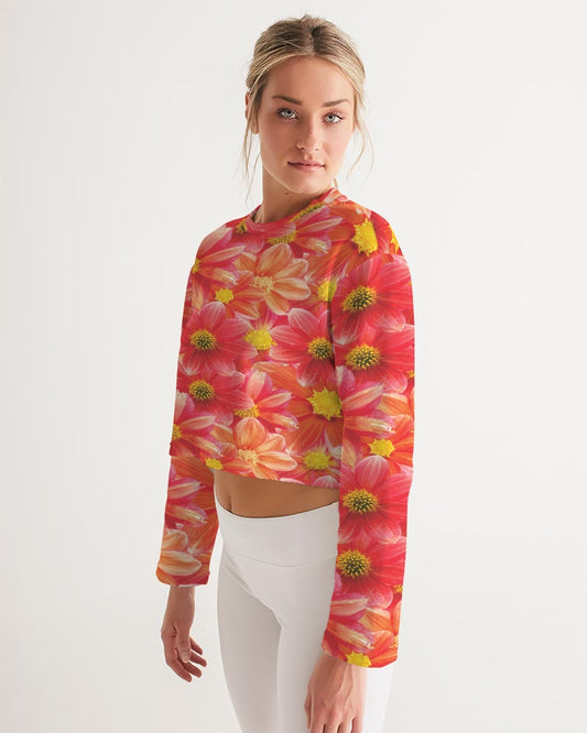 Beautiful blood orange flower design Women's All-Over Print Cropped Sweatshirt