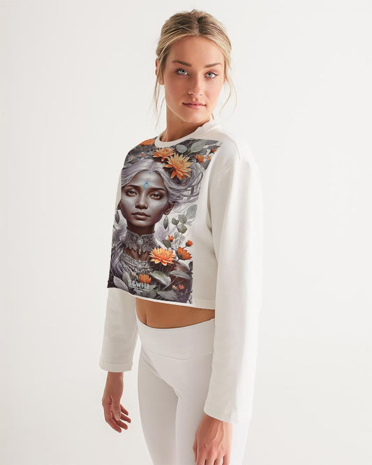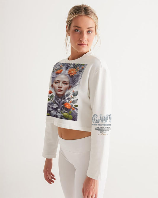 Beautiful white sister grey hair blossom Women's All-Over Print Cropped Sweatshirt