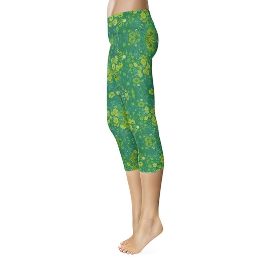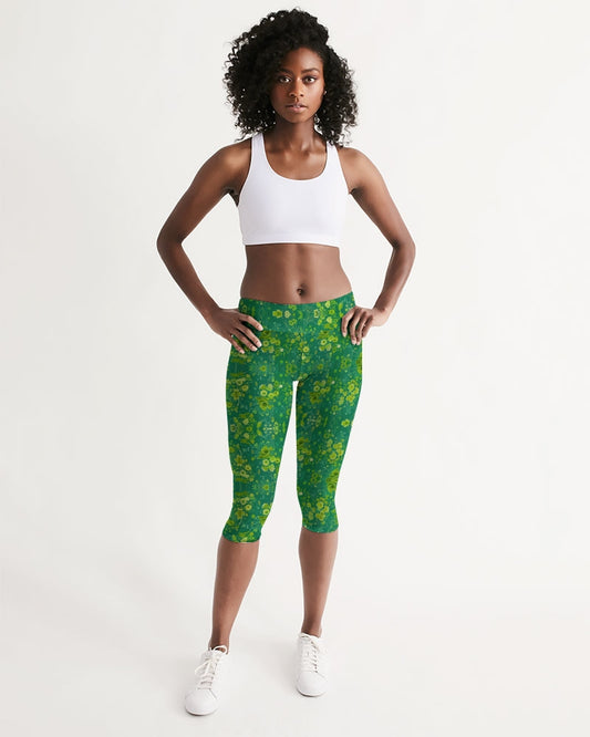 Green lush Repeat pattern Women's Mid-Rise Capri