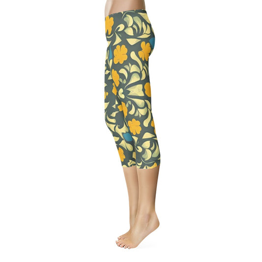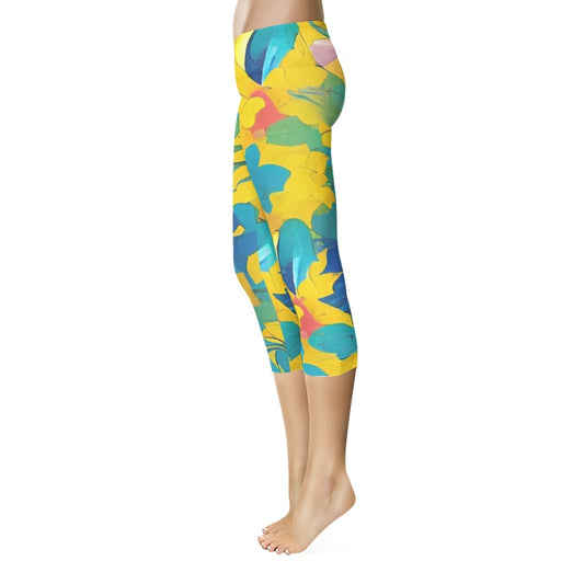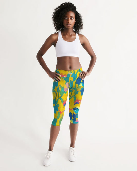 Beautiful yellow and blue hint of red pattern Women's Mid-Rise Capri