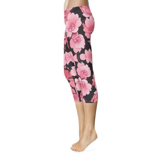 Silver grey white hair inspiration -Over Print Capri pink flower Leggings