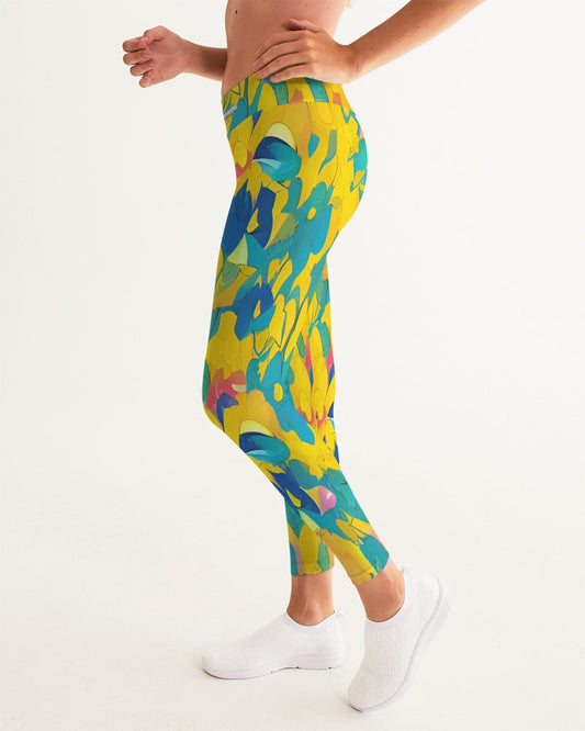 Beautiful yellow and blue hint of red pattern Women's Yoga Pants