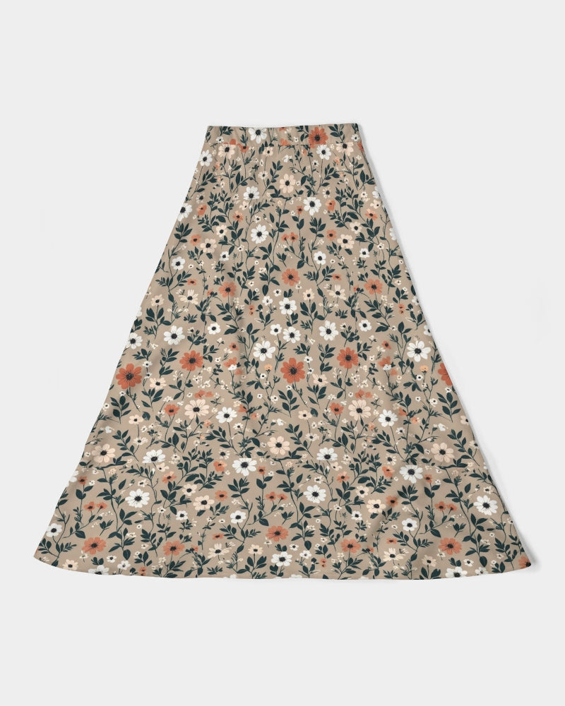 About The ArtBusy and pretty Beautiful array of small gorgeous flowers pattern with a light brown autumn feel Product DetailsTimeless and chic, our Women's A-line Midi Skirt is made from a beautifully draped smooth chiffon. Polished with a thick waistband and side zipper, it's fitted at your waist and has a flowy bottom.