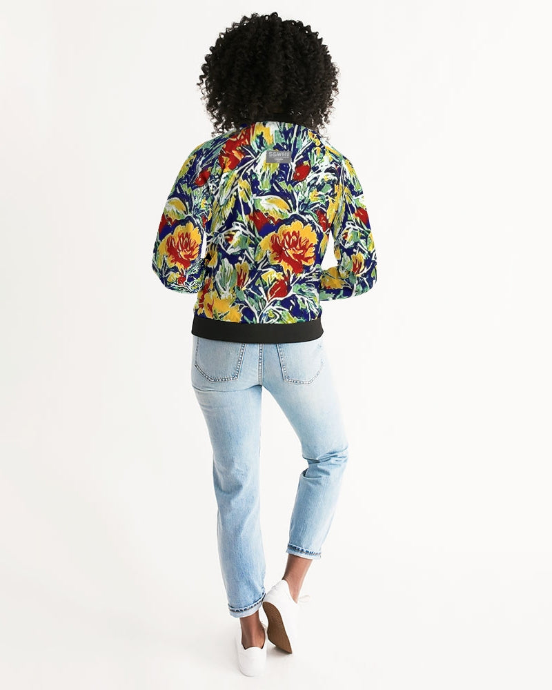 About The ArtPainted floor design Artistic floral design Product DetailsHand-cut and crafted with care, your custom designed Women's Bomber Jacket will set off any look! Its lightweight, airy fabric is lined with the perfect amount of insulation for the chillier months making this a great year round go-to.