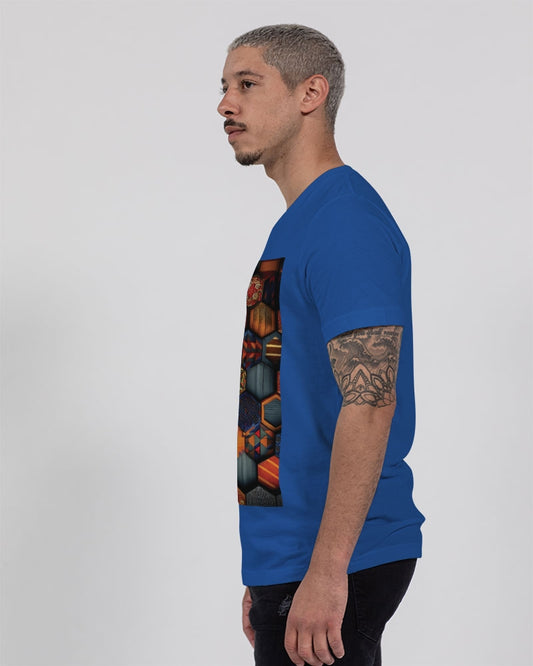 Men flower Hexagon patten. Unisex Jersey V-Neck Tee | Bella + Canvas