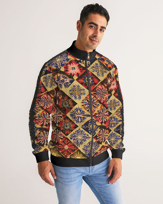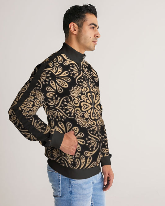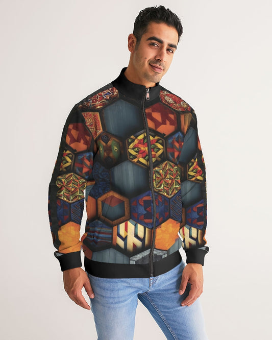 Men flower Hexagon patten. Men's All-Over Print Stripe Sleeve Track Jacket